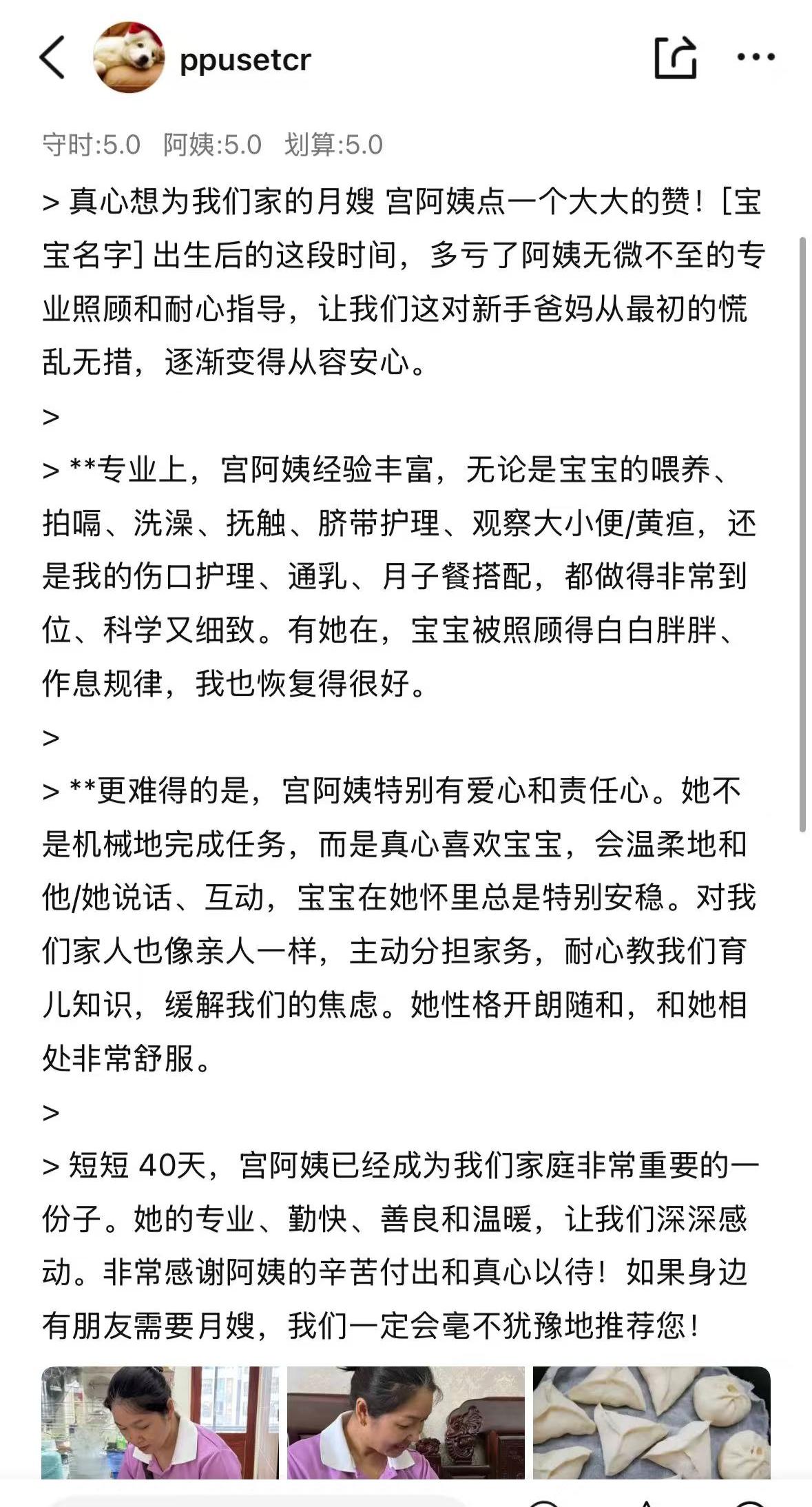 宮阿姨是尚佳的高端月嫂,在尚佳已從事月嫂多年年,做到盡心盡力服務(wù),并無一投訴,無一差評(píng),對(duì)待寶寶如同自己孩子,對(duì)寶媽的護(hù)理也是細(xì)心貼心,對(duì)待寶媽家里人也是熱情開朗,做事認(rèn)真負(fù)責(zé),踏實(shí)肯干。